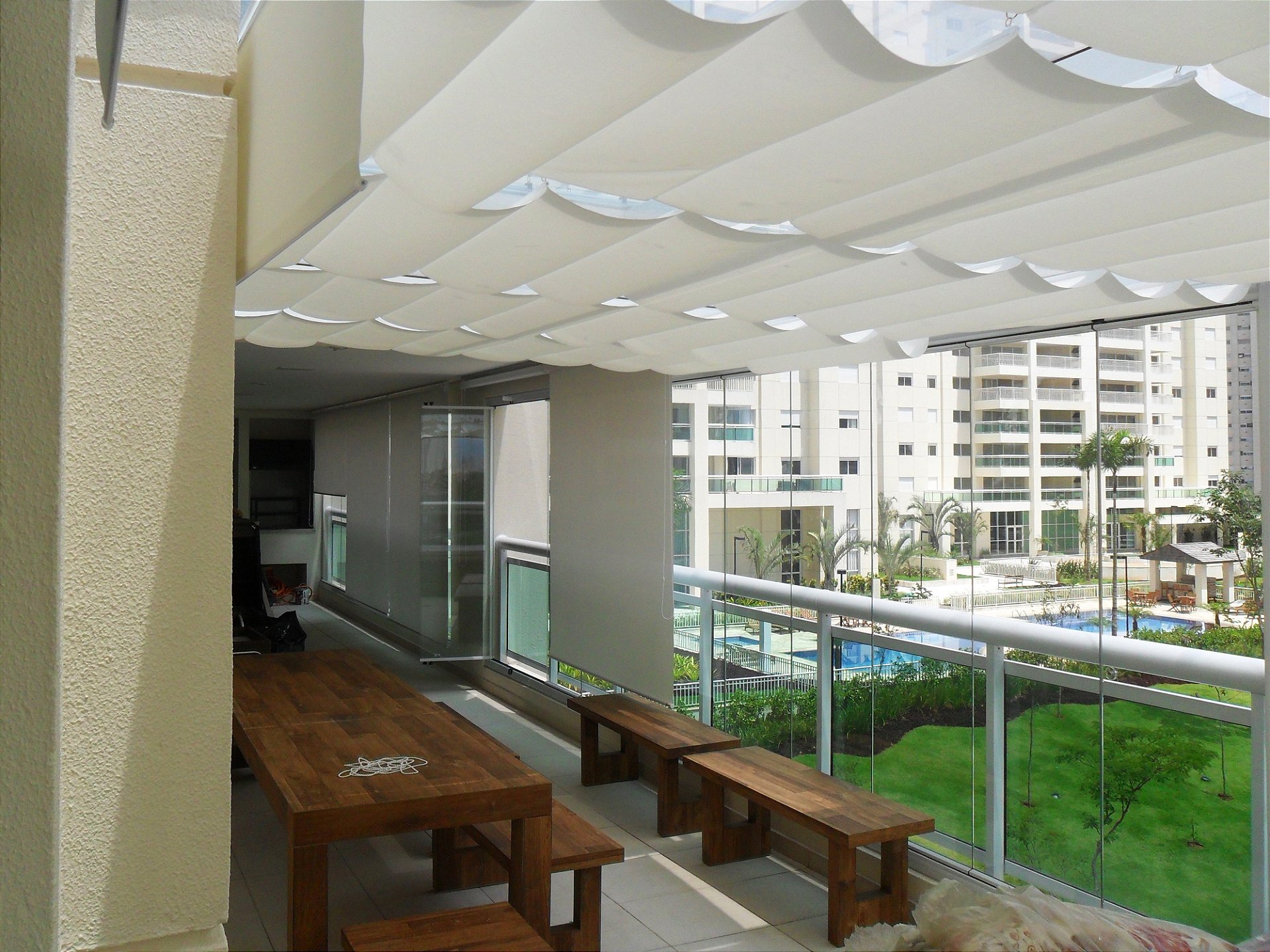 A Persiana Romana de Teto foi desenvolvida para resolver esse problema, permitindo regular a entrada de luz e reduzir o calor, criando um espaço muito mais confortável para aproveitar.